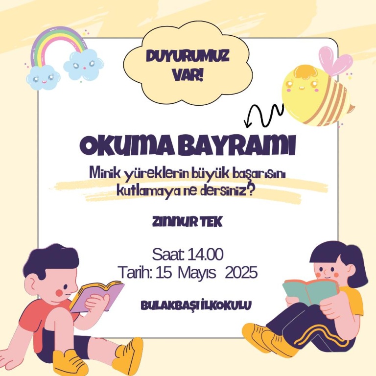 1A sınıfımızın okuma bayramı öğretmenimiz Zinnur Tek rehberliğinde 15.05.2025 tarihinde kutlanacaktır.